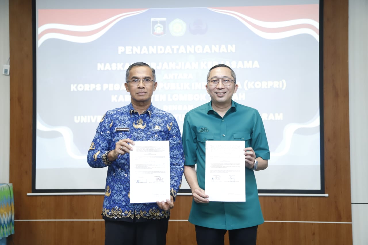 Penandatanganan PKS dilakukan oleh Rektor UNW Mataram, H. Lalu Gede Syamsul Mujahidin, dan Ketua Dewan Pengurus KORPRI Lombok Tengah, H. Lalu Firman Wijaya.