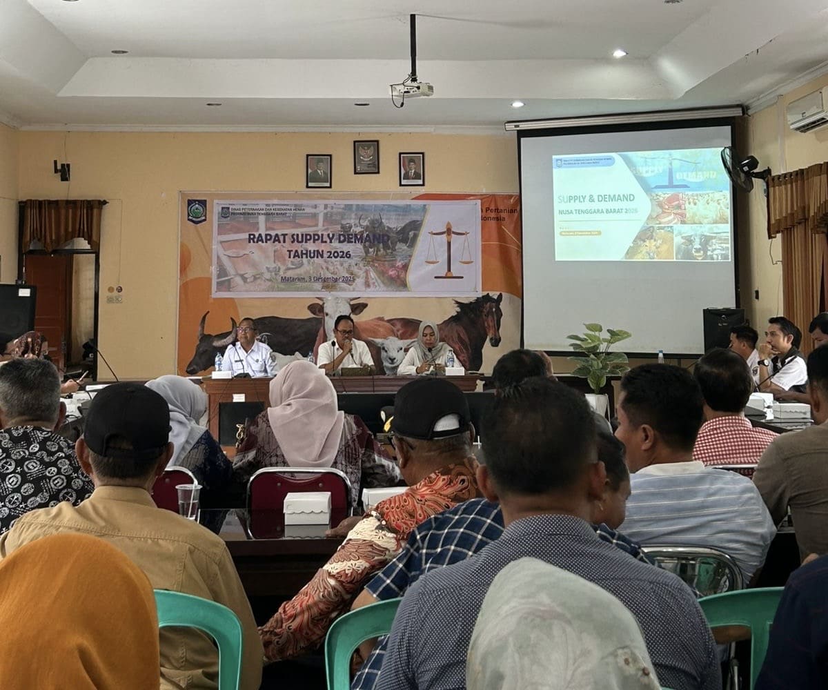 Pojok NTB – Dinas Peternakan dan Kesehatan Hewan Provinsi NTB menggelar Rapat Supply & Demand 2026 untuk membahas sejumlah agenda penting, termasuk penetapan kuota pengiriman sapi hidup ke luar daerah pada tahun 2026. Kegiatan ini juga menjadi forum untuk menyempurnakan mekanisme lalu lintas ternak dan memperkuat pengawasan produk asal hewan yang masuk maupun keluar NTB.
