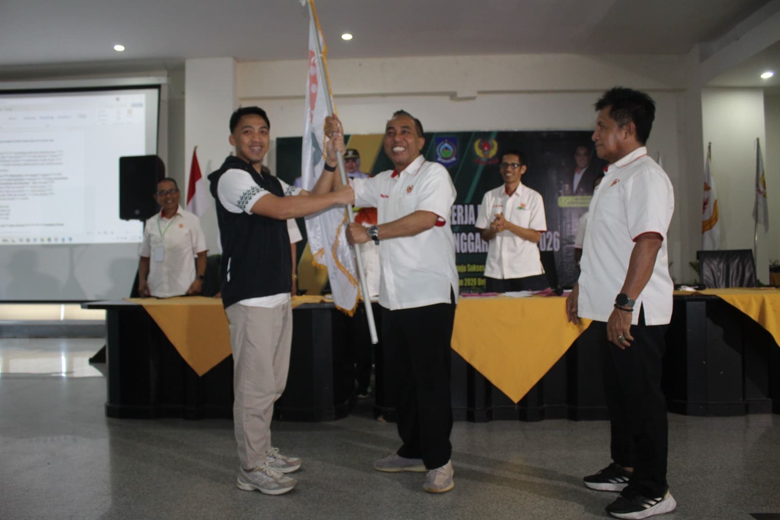 Pojok NTB— Pengurus Provinsi Persatuan Padel Indonesia (PBPI) Nusa Tenggara Barat menyerahkan bendera pataka organisasi dalam Rapat Kerja Provinsi (Rakerprov) KONI NTB. Momentum ini menjadi penegasan keseriusan PBPI NTB membangun olahraga padel di daerah, sekaligus membakar semangat menyongsong Pekan Olahraga Provinsi (Porprov) 2026 dan Pekan Olahraga Nasional (PON) 2028.