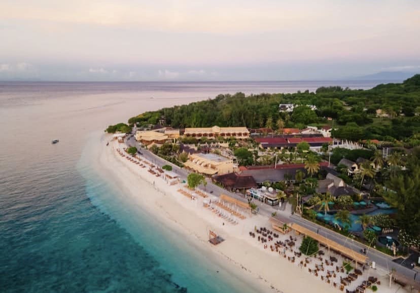 Pulau yang terletak di Lombok, Nusa Tenggara Barat ini dikenal dengan air lautnya yang jernih, gradasi warna biru yang memukau, serta ombak yang relatif tenang sehingga aman dan nyaman untuk aktivitas berenang.