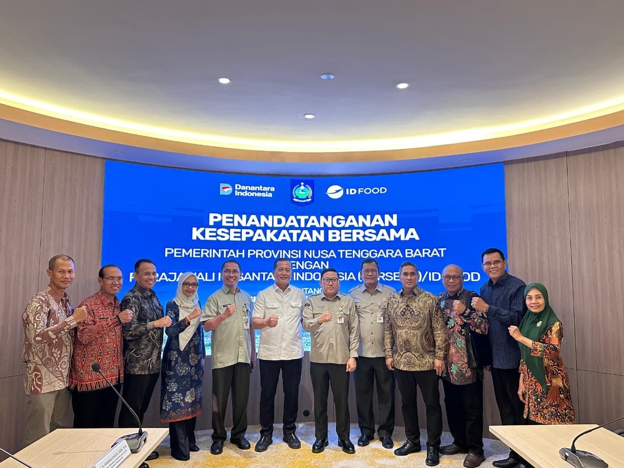 Penandatanganan MoU dilakukan oleh Gubernur NTB H. Lalu Muhamad Iqbal bersama Direktur Utama ID FOOD Ghimoyo, disaksikan oleh Dirjen Peternakan dan Kesehatan Hewan Kementerian Pertanian RI Dr. drh. Agung Suganda, M.Si, di Gedung PT Rajawali Nusantara Indonesia, kawasan Mega Kuningan, Jakarta, Senin (9/3/2026).
