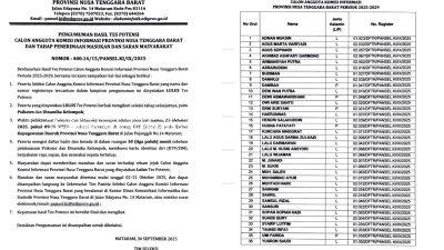 Pojok NTB – Panitia Seleksi Calon Anggota Komisi Informasi Provinsi Nusa Tenggara Barat (NTB) periode…